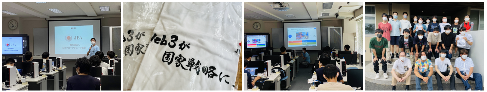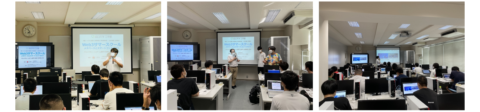 2022年8月11日、山口大学工学部知能情報学科の河村研究室の協力のもと、ブロックチェーン技術を活用したゲーム・エンターテイメントサービスを提供する企業の開発者たちが学生たちとインタラクティブに、メタバースとWeb3の世界を学び、ブロックチェーン上で動くプログラミング「スマートコントラクト」を体験しました。