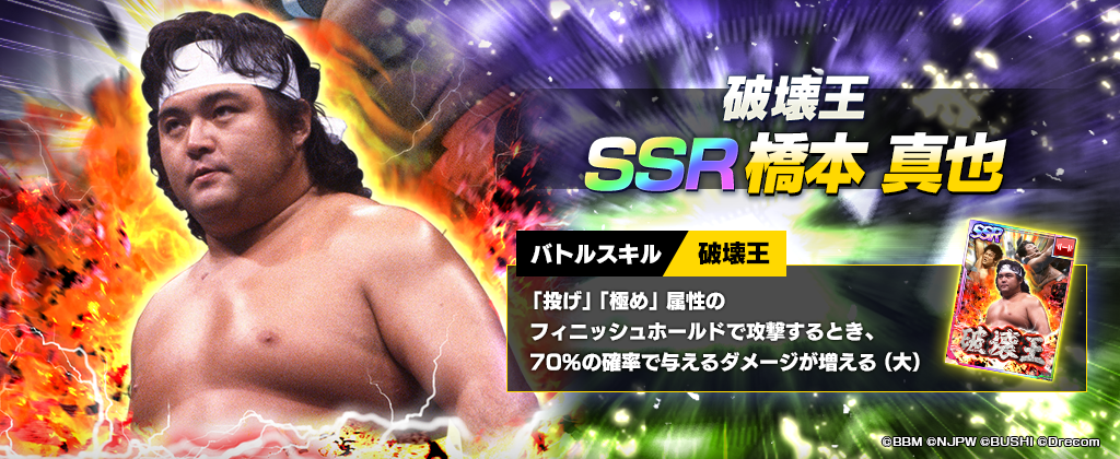 - レジェンド橋本真也選手参戦記念として「SRパートナー「[破壊王]橋本真也」獲得ミッション」が期間限定で開催中!