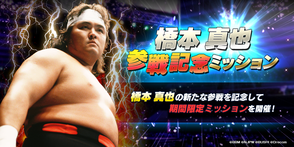 - レジェンド橋本真也選手参戦記念として「橋本真也参戦記念ミッション」が期間限定にて開催中!