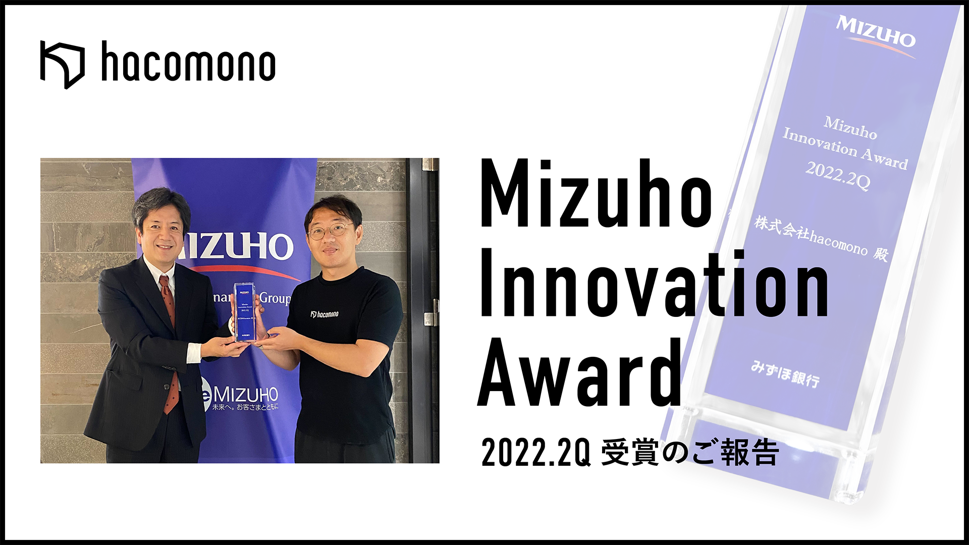 この度の「Mizuho Innovation Award」の受賞を心より深く感謝いたします。hacomonoのミッションである「ウェルネス産業を、新次元へ。」の実現に向け、より良い社会につながる日本の健康課題解決に貢献できるような事業をウェルネス産業とともに推進してまいります。
