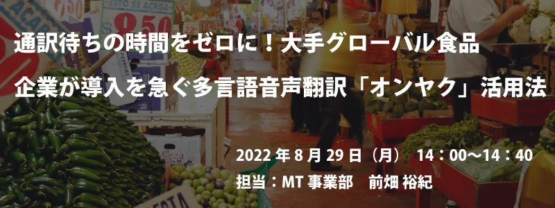 そこで本ウェビナーでは、Web会議/商談の発言内容を瞬時に翻訳し、文字起こしする音声翻訳ツール「オンヤク」の実演と活用事例をお届けします。食品大手の企業が頻繁におこなう多言語会議の通訳代わりに使え、また議事録/レポート作成の補助ツールとしても活躍中のツールです。