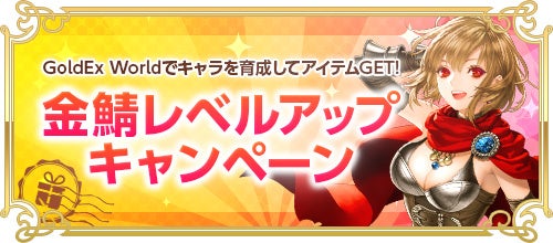 「GoldEx Wold」でキャラクターを育成すると、特定のレベル達成時にご登録のメールアドレスへレベルアップのお祝いメールが送信され、WEB倉庫にプレゼントが届く「金鯖レベルアップキャンペーン」を実施中です。