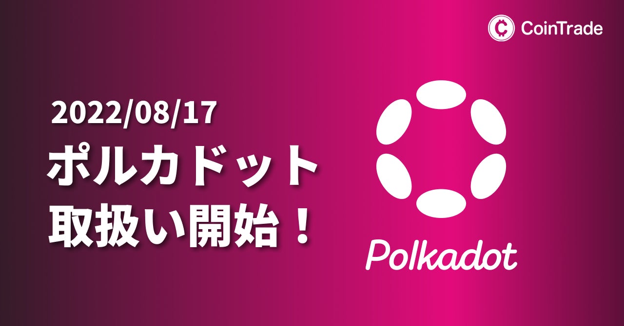 株式会社マーキュリー(本社:東京都世田谷区 代表取締役社長:都木 聡、以下、「当社」)は、当社の提供するサービス「CoinTrade」(コイントレード)において、2022年8月17日より新たにポルカドット(DOT)の取扱いを開始したことをお知らせいたします。これにより「CoinTrade」(コイントレード)では9種類の暗号資産を取扱うこととなります。
