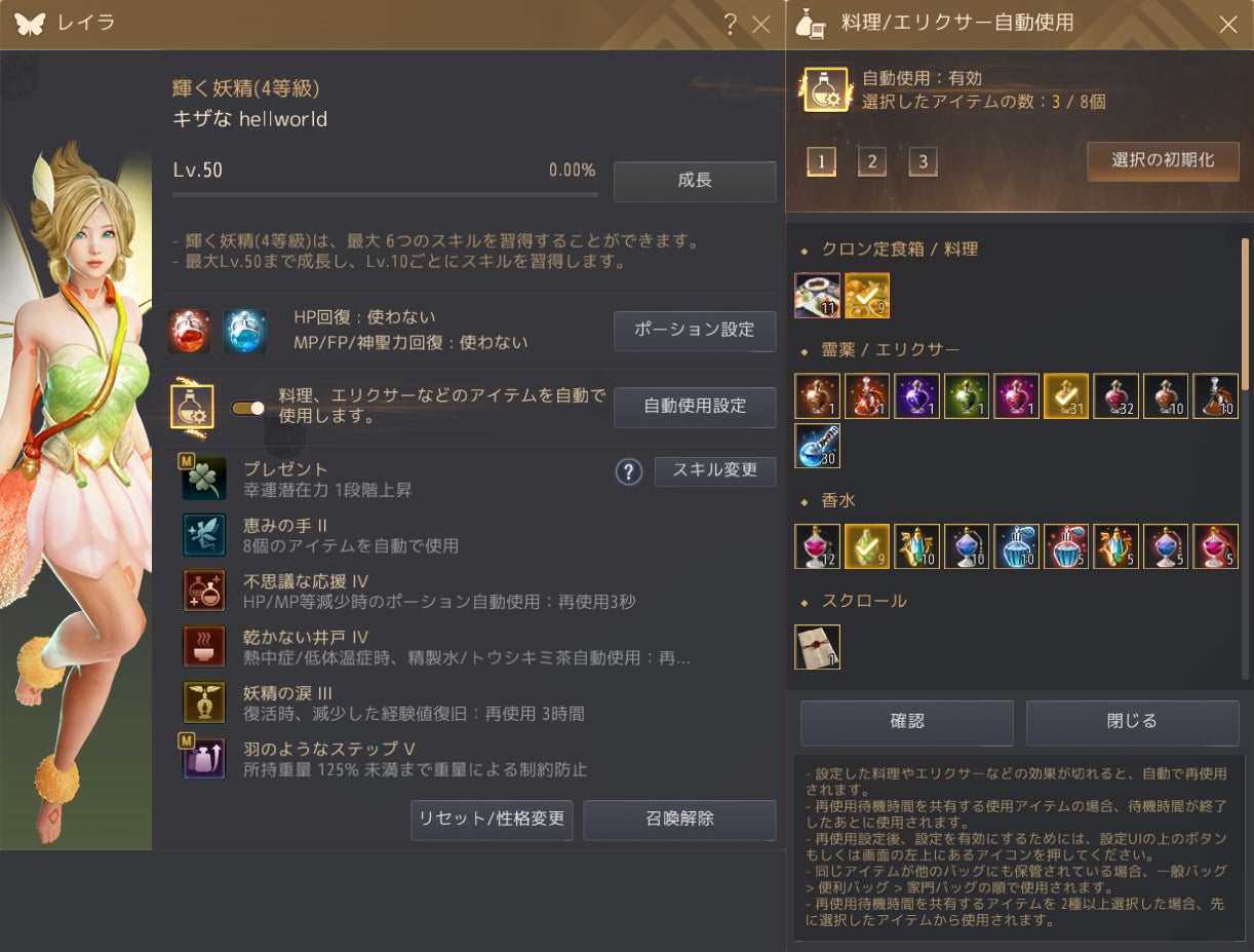 また、妖精の最大レベルが上昇し、バフアイテムを自動で使用する「恵みの手」という便利機能も登場しました。