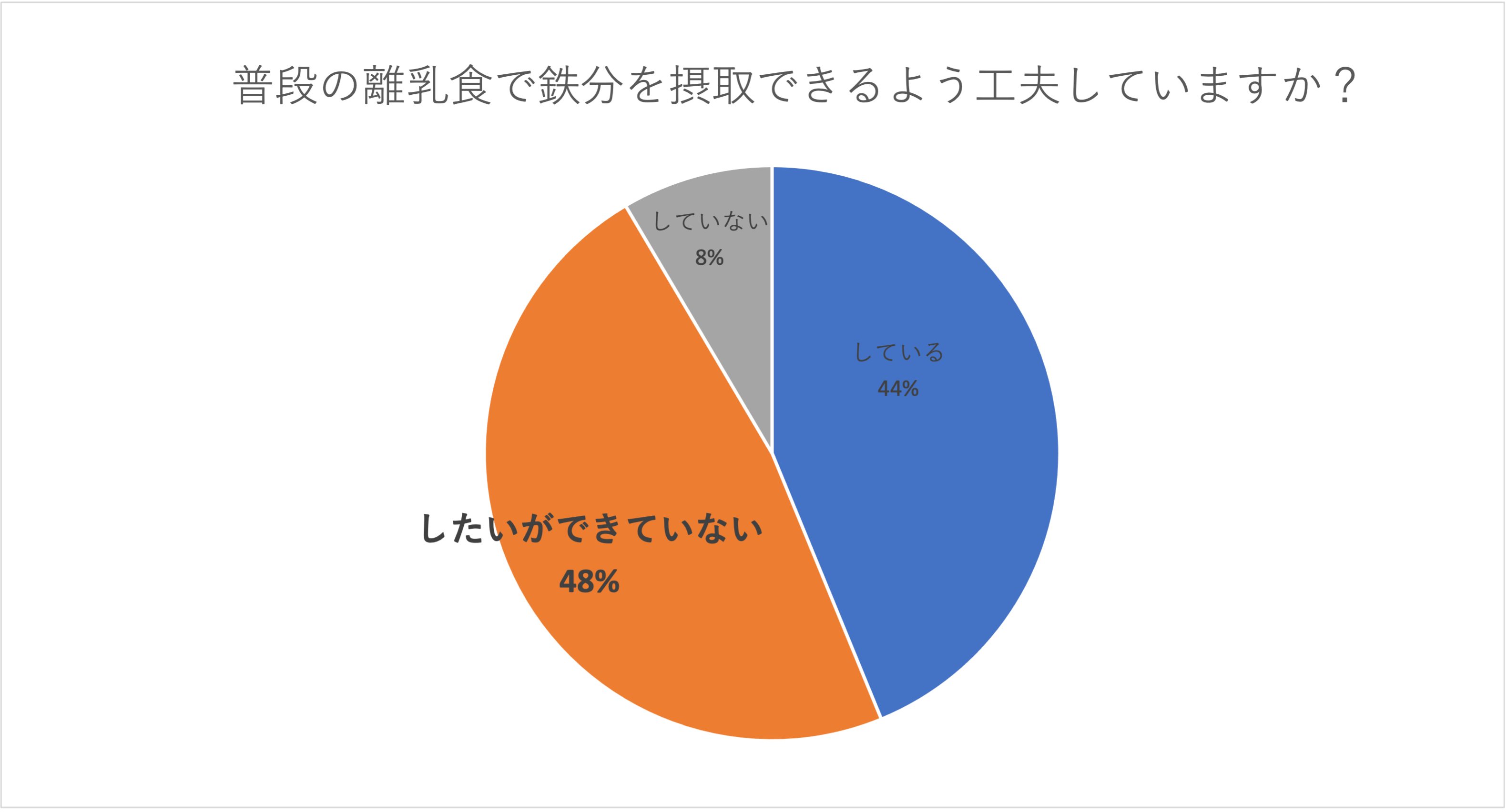 その背景には「子どもの成長時期に合った鉄分を含む食材がわからない」、「与え方がわからない」といった声が挙がり、食材とその与え方を把握できるようサポートが必要であることが調査結果から判明しました。