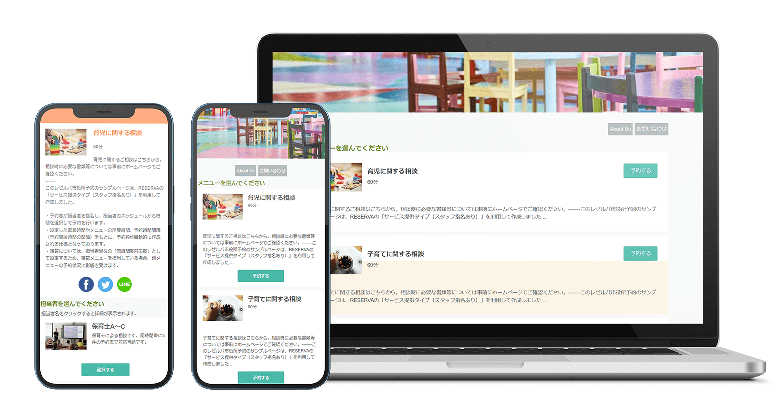 ■子育て相談窓口に対応した予約システム「RESERVA」のサンプル画面