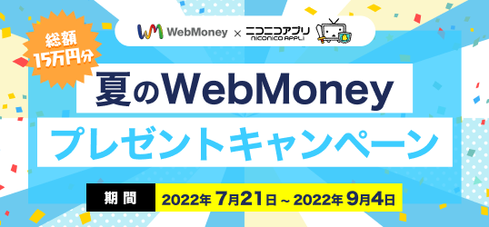 夏のWebMoneyプレゼントキャンペーンを株式会社ドワンゴが運営するブラウザゲームプラットフォーム「ニコニコアプリ」で開催中!
