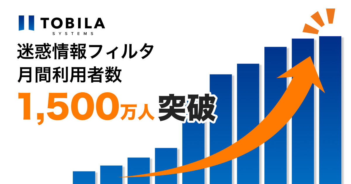 トビラシステムズは、特殊詐欺やフィッシング詐欺の対策に有効な「迷惑情報フィルタサービス」を提供しています。サービスの要である迷惑情報データベースは、利用者数が増えるほど収集可能な情報も増え、精度が向上します。サービス利用者自身が危険から守られると同時に、他の利用者の安全にもつながります。依然高水準で発生する特殊詐欺被害への対策ニーズの高まりや、大手通信事業者との提携などが要因となり、トビラシステムズの迷惑情報フィルタサービスの月間利用者数は1,500万人を突破。日本の人口のおよそ8人に1人が利用しているサービスとなりました(注2)。現在、月間約140万件の迷惑電話をブロック、月間約2億件のメッセージを判定・分析しています。
