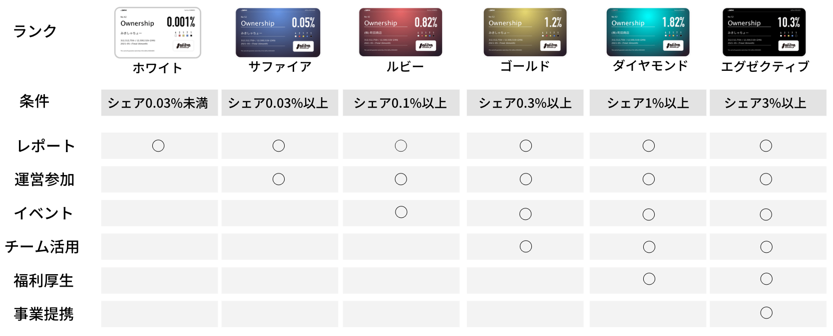3. 総発行数に対する保有率によってオーナー権のランクが異なります。