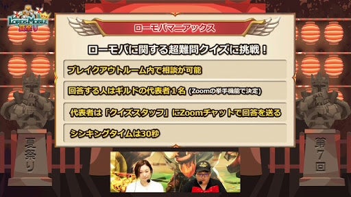 まずは恒例のイベントギルド対抗クイズゲーム「ローモバ マニアックス」!