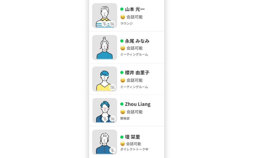 顔写真をルーム内に限定して共有する場合、ルーム外ユーザーのリスト上は顔写真ではなくプロフィール写真が表示され、プライバシーが保護されます。ぜひ一度お試しください。