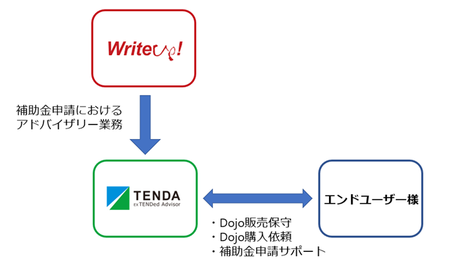 マニュアル自動作成ツール「Dojo」を販売しているテンダに、弊社より補助金申請に関する各種アドバイスを提供します。テンダからIT導入補助金を活用した「Dojo」の導入提案を行うことで、中小企業がDX化に一歩踏み出せる環境を両社で構築してまいります。