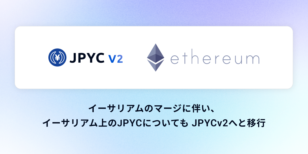 Mergeに伴い、現在Ethereum上で発行している既存のJPYCをJPYCv2に移行することをお知らせいたします。