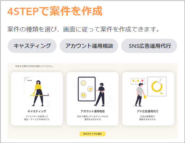 このようなご要望を持つ企業のご担当者様にとって、「COCO PARK」では、業界屈指のインフルエンサー事務所やSNSに強い代理店からのアドバイスや提案が届きます。