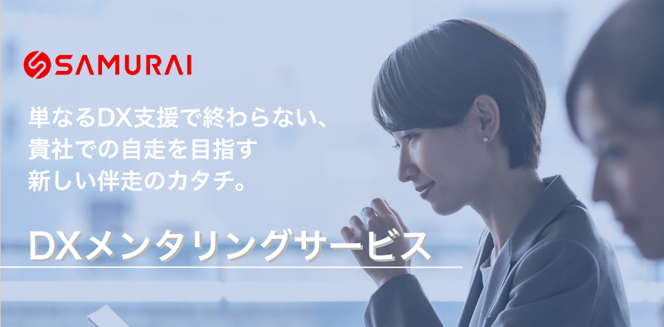 SAMURAIの「DXメンタリングサービス」では、様々な領域や段階のDX推進に対応すべく、各企業様に対して最適なメンターをアサインして伴走支援を行い、実践的なナレッジ・ノウハウを提供いたします。