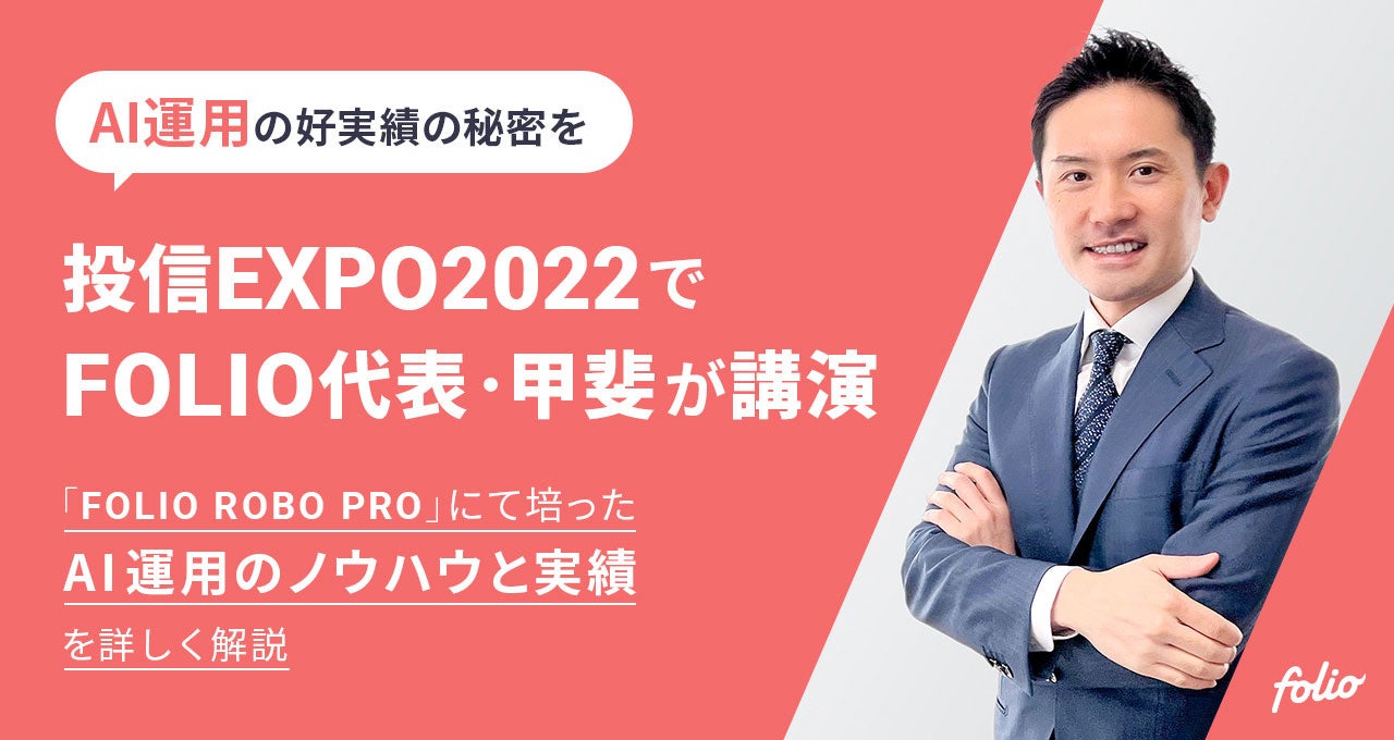 本イベントでは甲斐より「飛躍期を迎える『AI運用』~AI運用は人間を超えることができるのか~」をテーマにAI運用の領域をいち早く切り開いてきたFOLIOならではの取り組みや運用実績についての講演をさせていただきます。