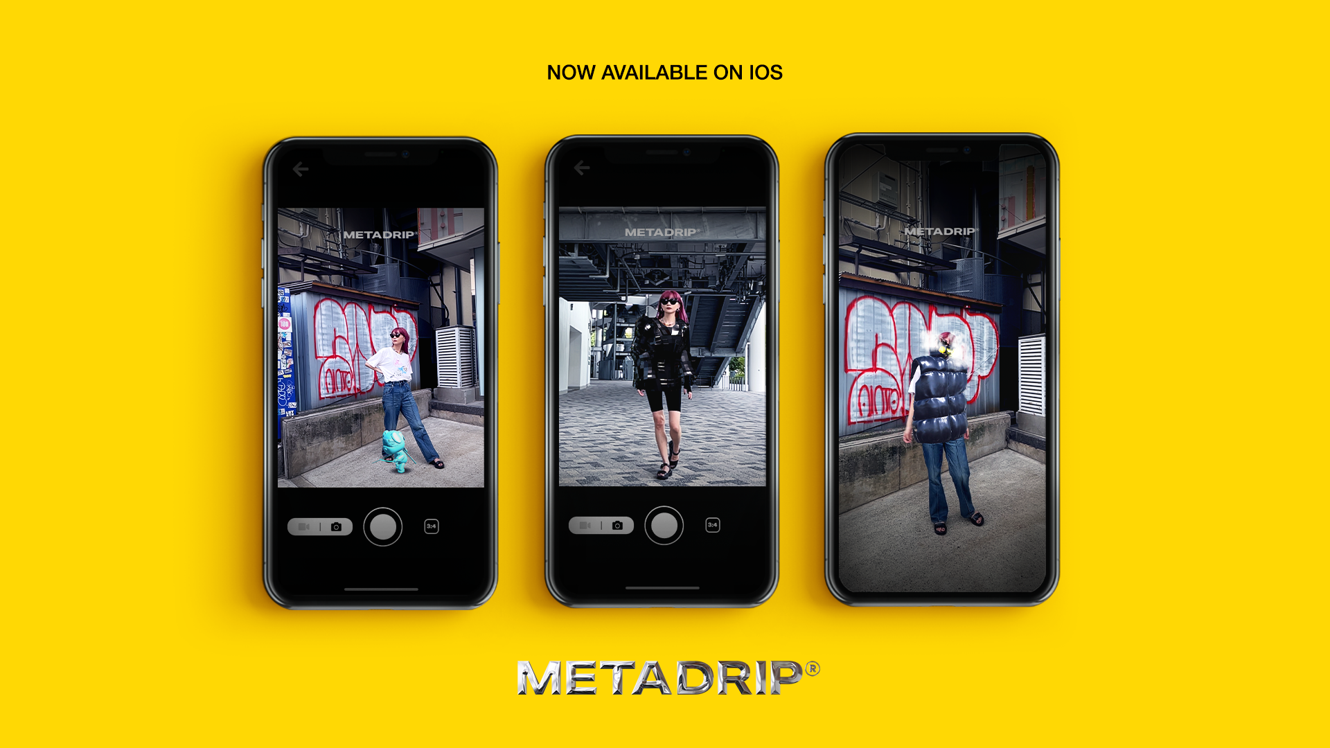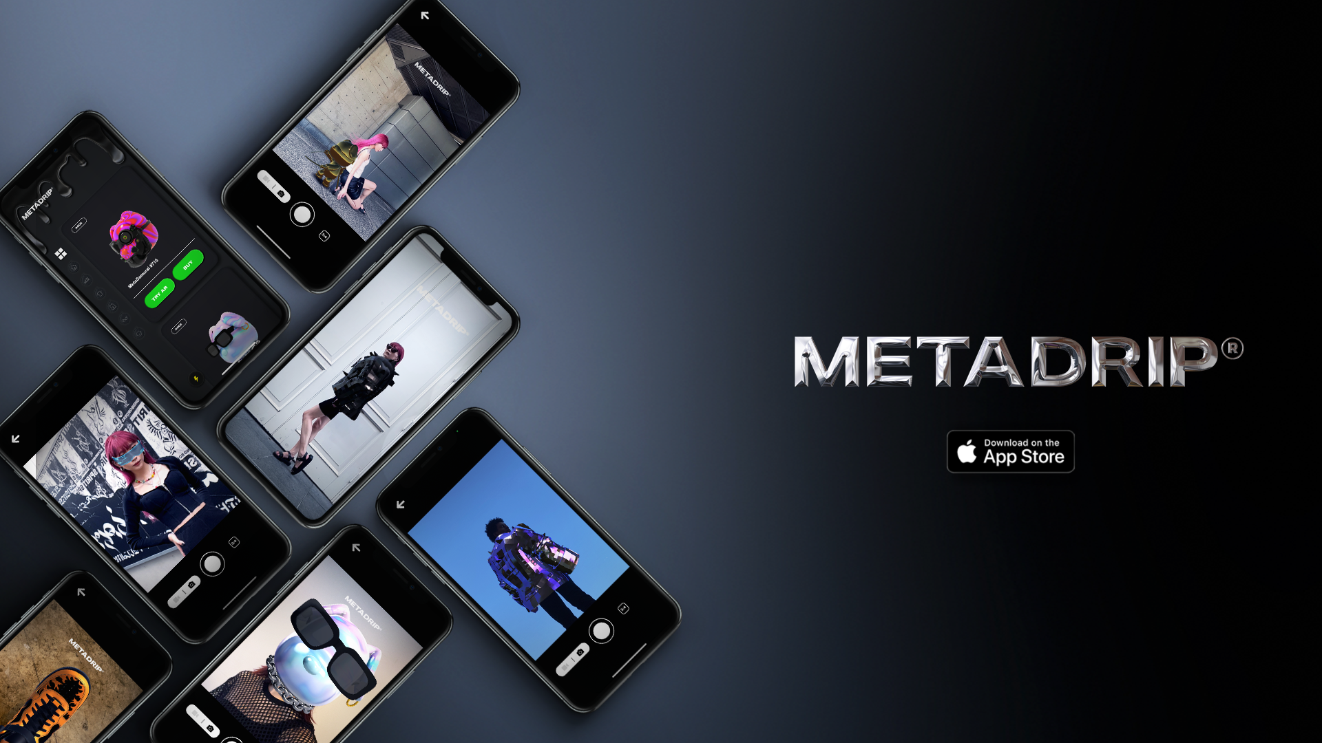 METADRIP は、3DCG で生成されたNFTをはじめとしたデジタル資産をスマートフォンのカメラを通じて、AR( 拡張現実 ) で着用/体験できる App Store向けスマートフォンアプリ。