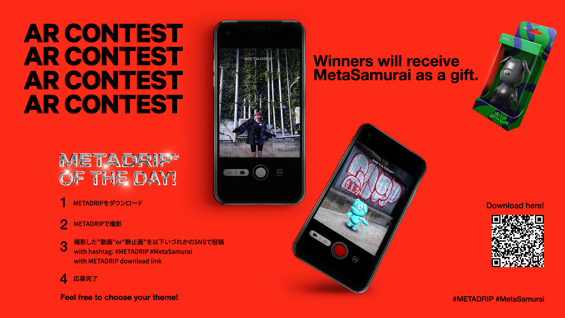 また、「METADRIP」β版のリリースを記念して、【1BLOCK】が運営する3,333体のコレクティブな1/1の3D NFTコレクション、「MetaSamurai」が当たるARコンテストを実施します。※選考があります。