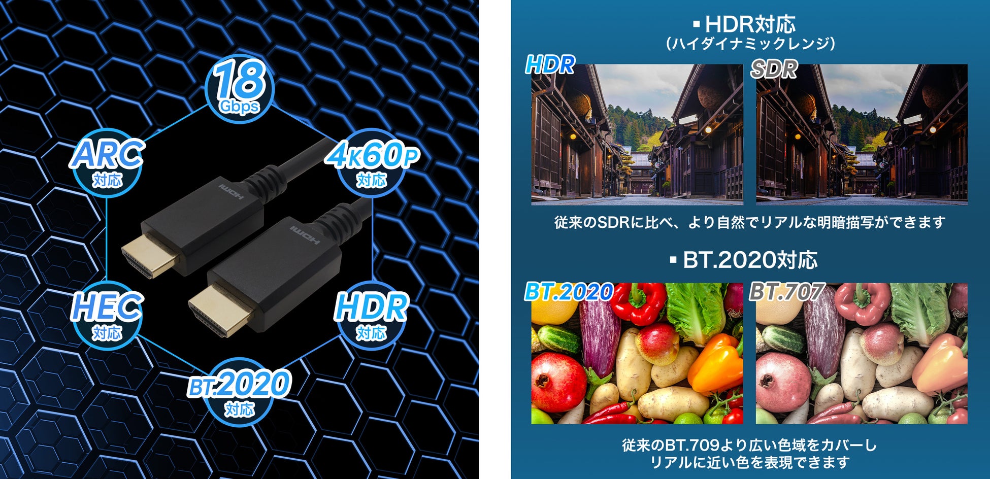 18Gbps高速伝送に対応しており、4K出力に対応したコンテンツの再生、並びに対応デバイスとの接続に最適な