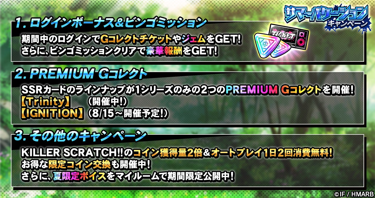 期間中、通常より豪華なアイテムと交換が可能な限定コイン交換の他、ビンゴミッションやログインボーナスなどを開催いたします。ビンゴミッションでは、すべてのミッションをクリアすると「Gコレクトチケット:SR以上確定」を獲得することができます。詳細はアプリ内お知らせをご確認ください。