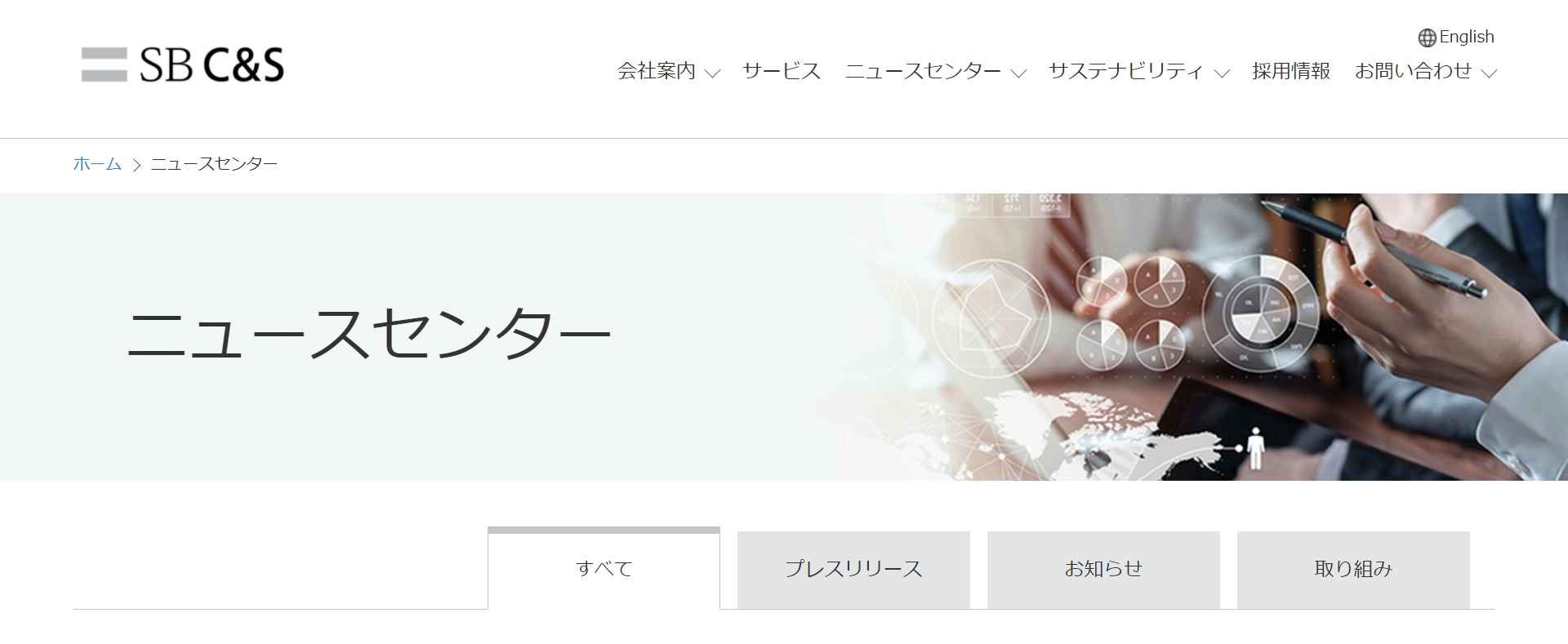 また、SB C&Sの取り組みについてより理解いただけるように今回新たに「サステナビリティ」ページと「ニュースセンター」を追加しました。