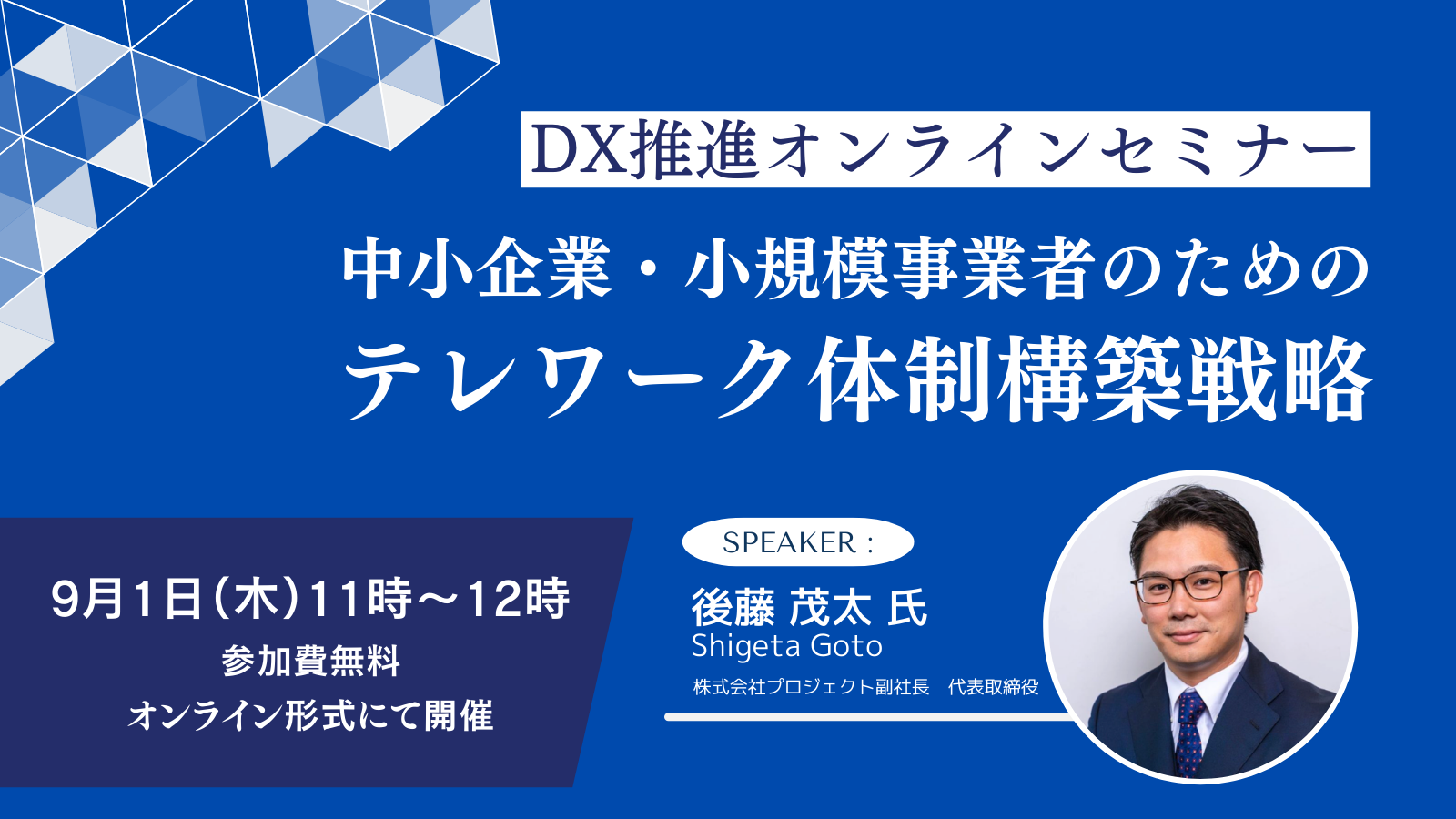 今回は、テレワークをはじめとする働き方の多様化を推進することによる、既存業務の見直しや事業の継続力を強化するといったメリットを解説しつつ、DX推進の中でも近年特に注目されている「生産性向上や効率化」を目的としたテレワークの活用方法や、体制構築の方法など、実践的な内容を学べるセミナーです。