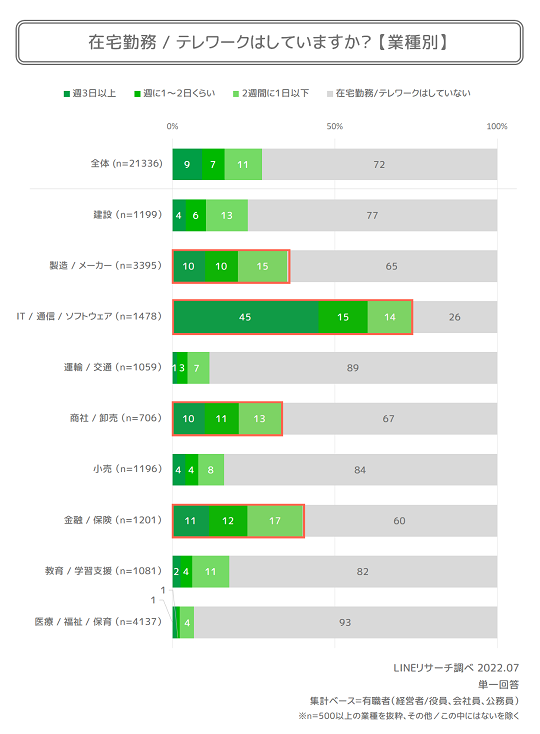 ■「在宅勤務はしていない」が7割超、IT関連は他の業種より在宅勤務・テレワークの割合が高い傾向