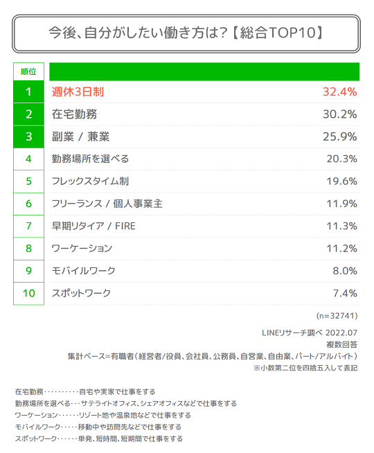 ■今後したい働き方は「週休3日制」と「在宅勤務」が上位で3割超