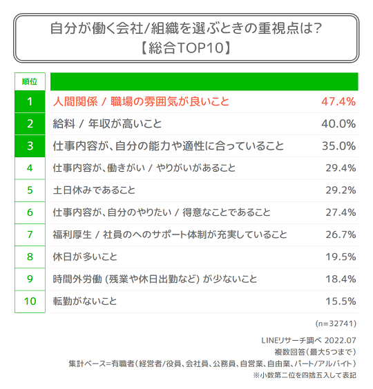 このたびLINEリサーチでは、日本全国の男女を対象に、コロナ禍での仕事・働き方への意識の変化や、企業を選ぶ際の重視点などについて調査しましたので、その結果をお知らせいたします。