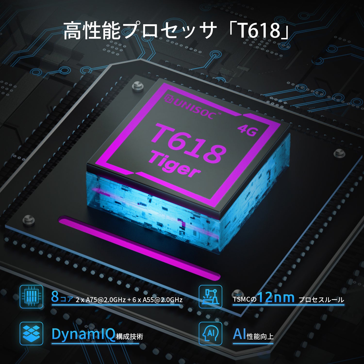 MaxPad I11タブレットはUNISOC T618の強力な8コア高速処理チップを搭載し、A75アーキテクチャコアを使用、最大周波数は2.0 Ghz対応、AnTuTu実行ポイントは210,000を超えます。