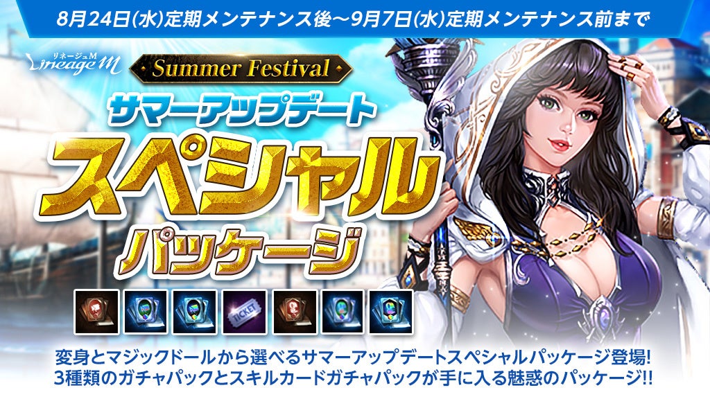 「サマーアップデートスペシャルパッケージ(変身)」と「サマーアップデートスペシャルパッケージ(マジックドール)」の2種類から選んで購入可能な、Summer Festivalのフィナーレを飾る「Summer Festival サマーアップデートスペシャルパッケージ」が登場しました。