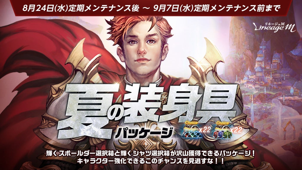 「夏の装身具パッケージ(シャツ)」は「輝くシャツ選択箱」を22個獲得でき、「夏の装身具パッケージ(スポールダー)」は「輝くスポールダー選択箱」を22個獲得できます。