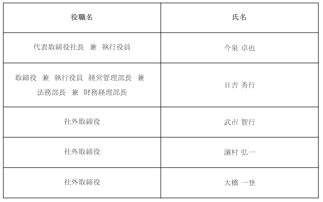 役職:当社 取締役 兼 執行役員 経営管理部長 兼 法務部長 兼 財務経理部長