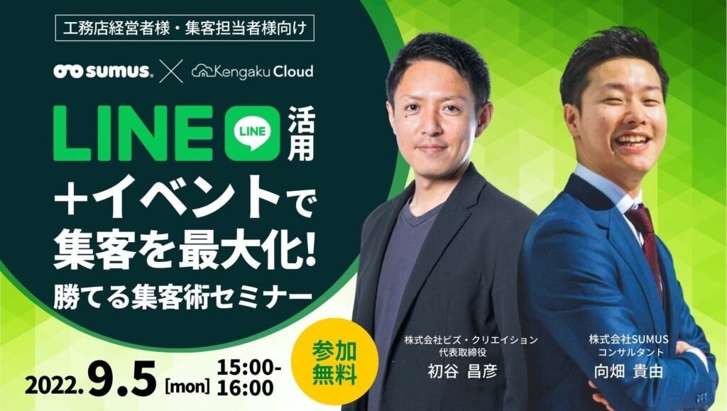ケンガククラウドでは、工務店経営者様・集客担当者様向けにイベント集客を成功させる秘訣をご紹介するセミナーを開催いたします。「LINEを積極的に活用したいがまだ出来ていない」「追客したくても新規客が来ない」といったお悩みを抱える皆様を対象としています。