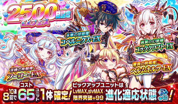 「2500日記念25連チケットガチャEX」でコスト65ユニットが確定!