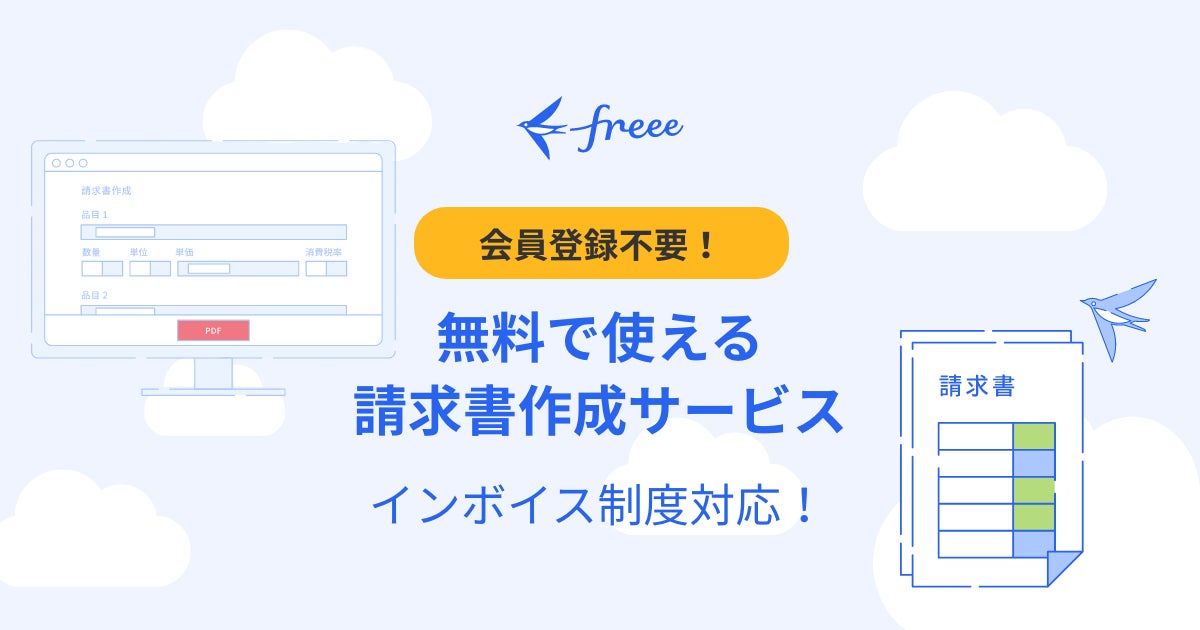 freee株式会社(本社:東京都品川区、CEO:佐々木大輔、以下「freee」)は、来年10月から始まるインボイス制度に向けて、インボイス制度に対応した請求書のPDFを無料で出力できるサイトを公開しました。必要項目を入力するだけで、インボイス制度に対応した請求書の発行が可能です。毎月発行する請求書が少ない為、有料の請求書発行サービスを使うほどでもないがインボイス制度に対応した請求書を利用したい方におすすめのサービスです。