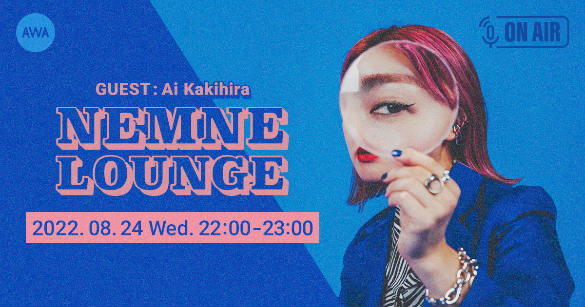 今回のイベントは、NEMNEが、ナイスな音楽とリラックスした雰囲気でお送りし、ゲストにプライベートでも親交の深い、Ai Kakihiraを招いてお届けします。LOUNGEは、どなたでも無料で参加することができ、AWAアプリを事前にダウンロードしていれば、アーティストとの交流など、よりお楽しみいただけます。ぜひ、NEMNEのラジオ配信ラウンジをお楽しみください。