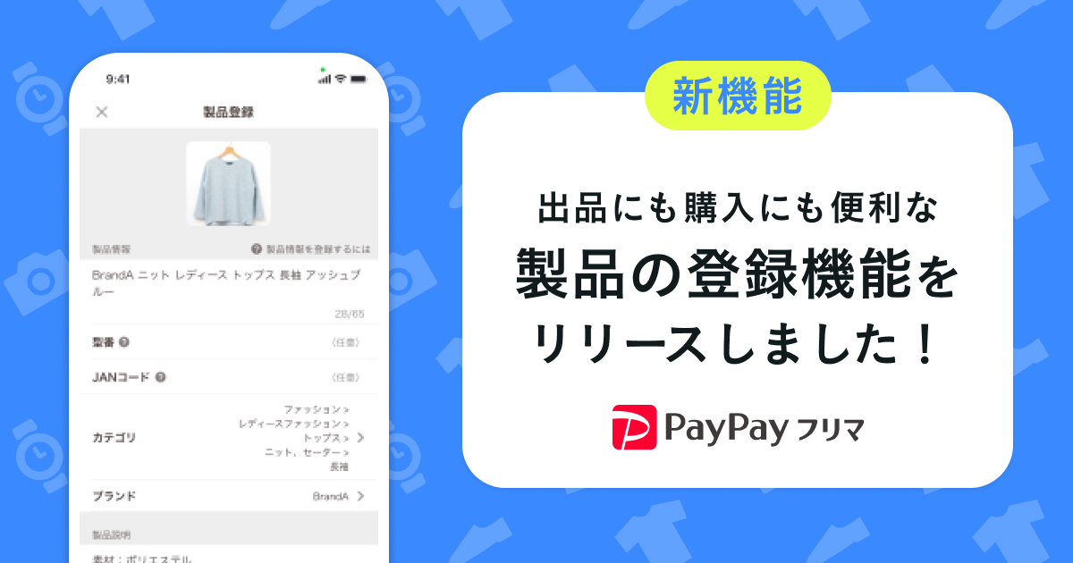 ヤフー株式会社(以下、Yahoo! JAPAN)が運営するフリマアプリ「PayPayフリマ」は、出品されたアイテム(商品)と製品情報を紐づけることで出品希望者と購入検討者をマッチングしやすくする「製品カタログ」(※1)の拡充を目的に、「製品カタログ」に掲載のない製品情報をユーザー自身が新たに登録できる「製品の登録機能」を本日提供開始しました。(※2)