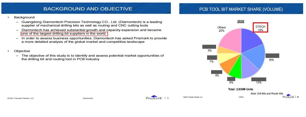 Prismark LLC のリサーチ報告によると、2020年のシェア(出荷本数ベース)は19%と業界シェア第一位で、DTECH社は世界の主要メーカーと位置付けています。