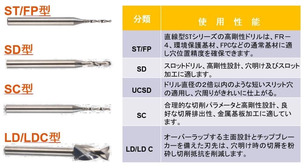 ・製品種類:ドリル、コーティングドリル、ドリル自動研磨機、ルーター、バフ、銅厚測定器、AF硬化フィルム、覗き見防止フィルム