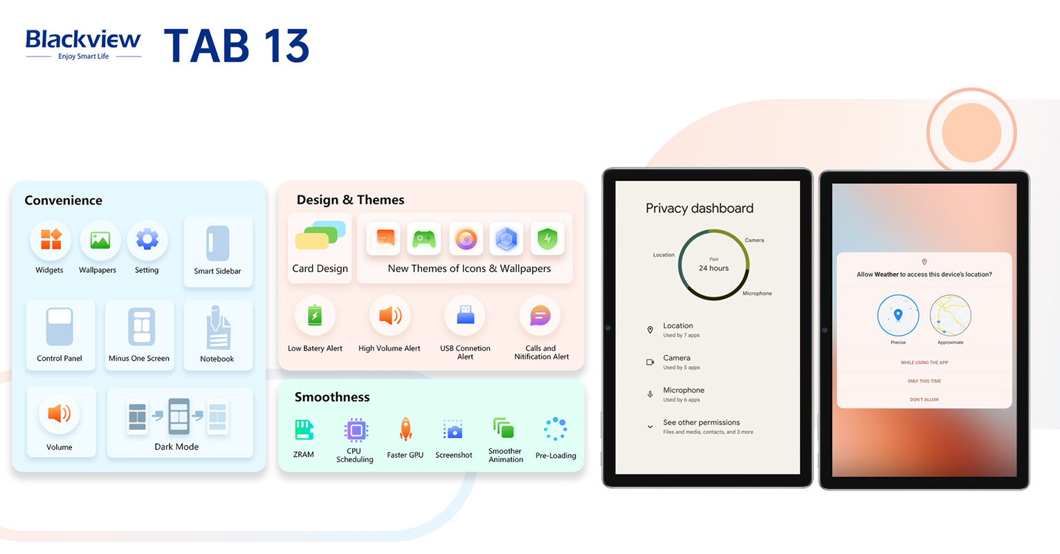 Blackviewのタブレットの特徴の1つに、ソフト面に力が入っていることが挙げられます。Blackview Tab13のOSにはAndroid12をベースに開発されたDokeOS_P3.0が採用されています。