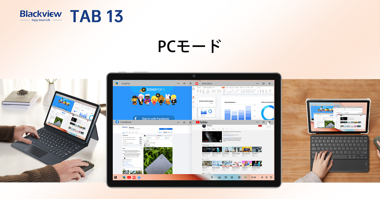 Blackview Tab13は128GBのeMMC5.1のストレージを持っており、多数のアプリや写真、動画を保存できます。もし128GBでも足りなくても、microSDカードで更に容量を増やせます。