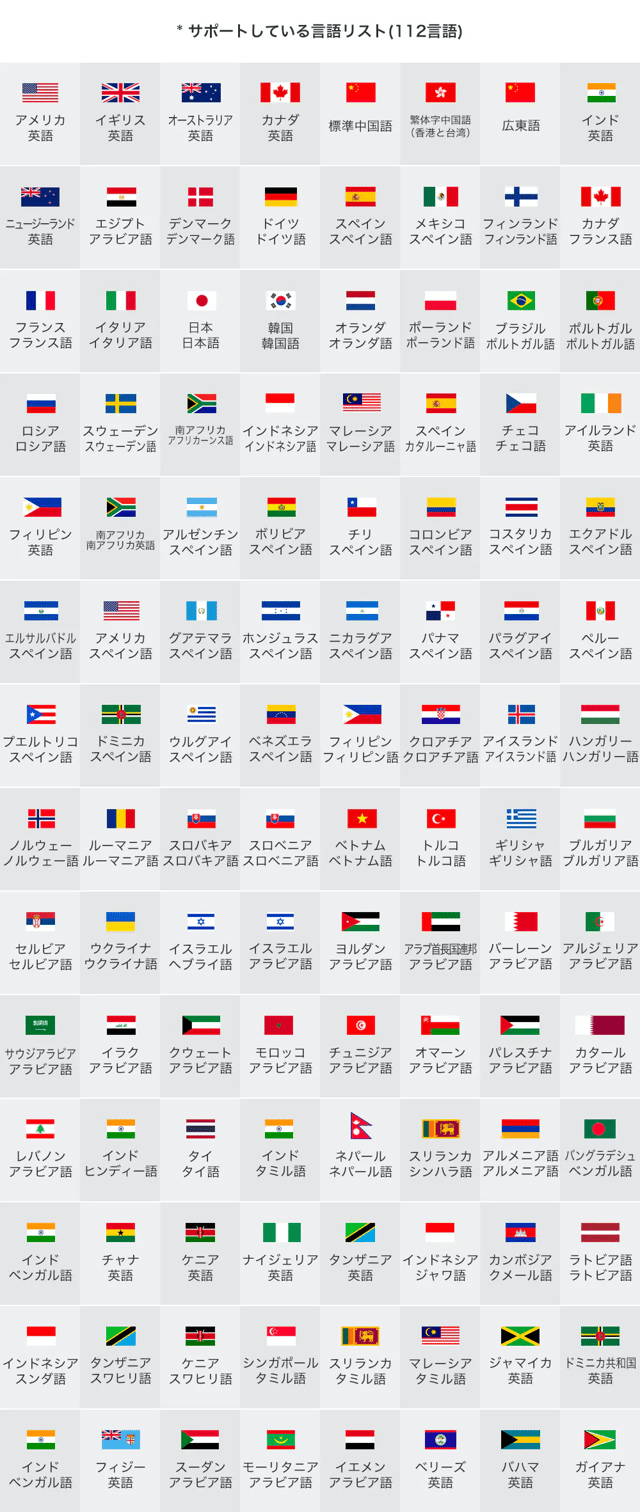 ・ オンライン時は世界112の言語・方言に対応