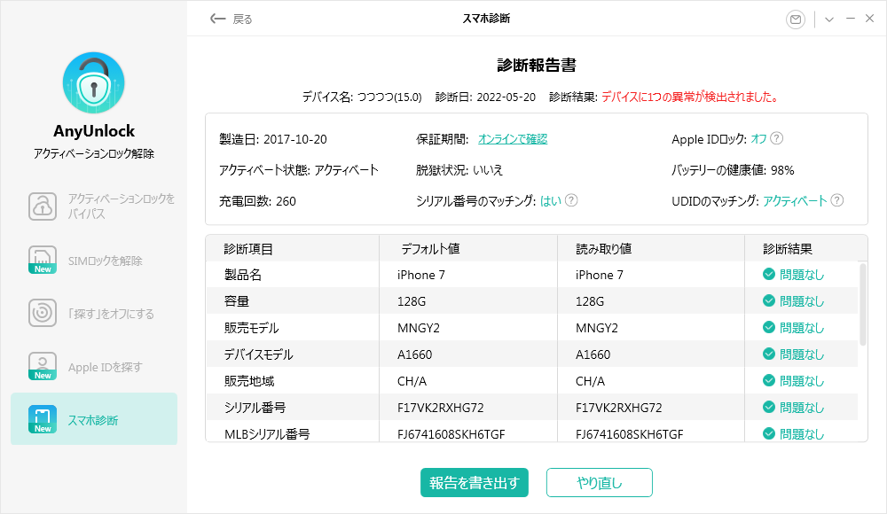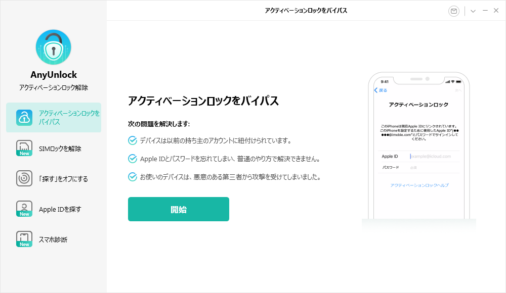 「AnyUnlock – アクティベーションロック解除」はアクティベーションロックの解除、SIMロックの解除、iOSデバイスの診断、Apple IDを探すためのワンストップソリューションです。それに、Apple IDのパスワードを忘れた時、iPhone/iPad/iPod touchの「探す」を強制的にオフできます。