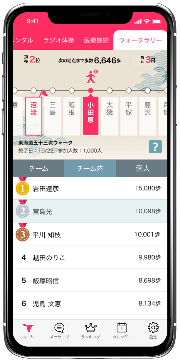 「スマホde東海道五十三次ウォークラリー」は、グッピーヘルスケアアプリのウォークラリー機能を使った近年社会問題化しているコロナ化の運動不足やコミュニケーション機会の減少によるストレス増大の軽減を目的とした無料の企業対抗ウォーキングイベントです。東海道五十三次をモチーフとしていて参加者の平均歩数でスポット(宿)が進んでいき、1か月間の歩数を競い合います。