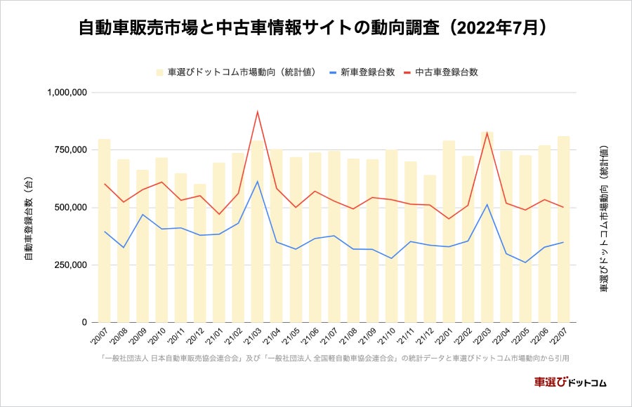 - 中古車情報サイト「車選びドットコム」の動向(2022年7月)