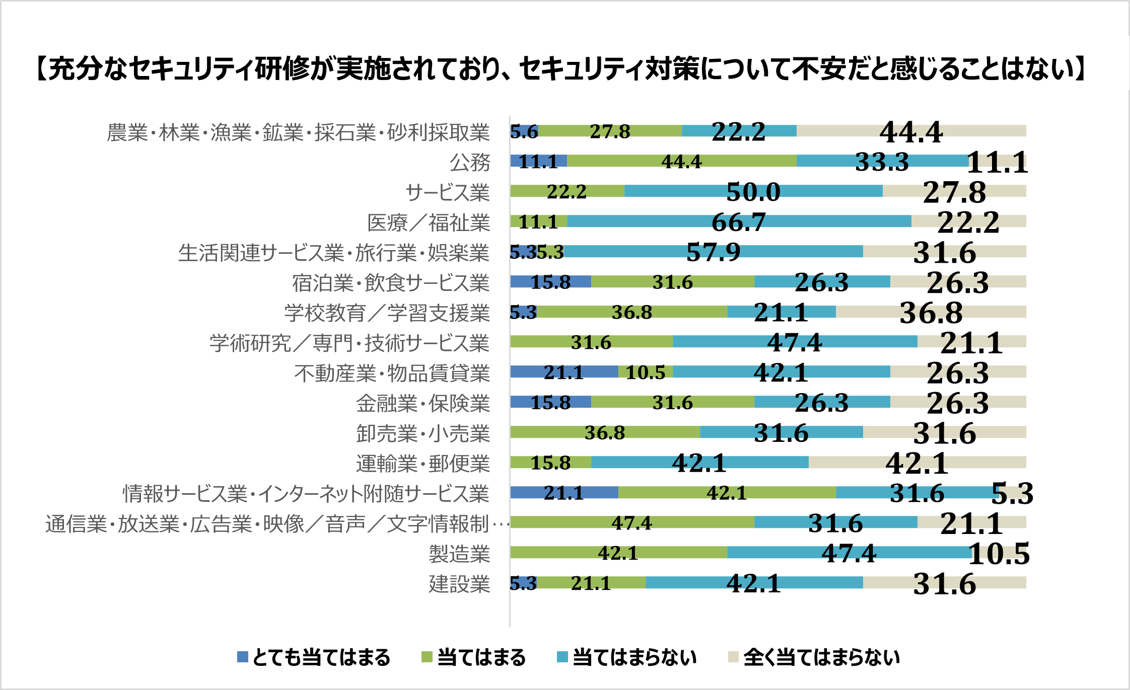サイバー防御力が低い業種では、従業員の2人に1人が勤務先のセキュリティ意識に