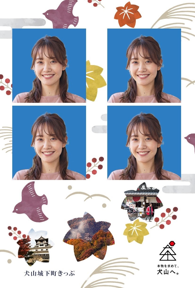 ②利用者が、このQRコードを犬山駅西口に設置している「Ki-Re-i」のQRコードリーダーにかざすことで、オリジナルデザインの記念撮影の写真プリントを受け取ることができます。台紙には犬山城や城下町の風景などをデザインしており、秋バージョンは2022年9月1日~11月30日に、冬バージョンは2022年12月1日~2023年2月28日に期間限定でご利用いただけます。