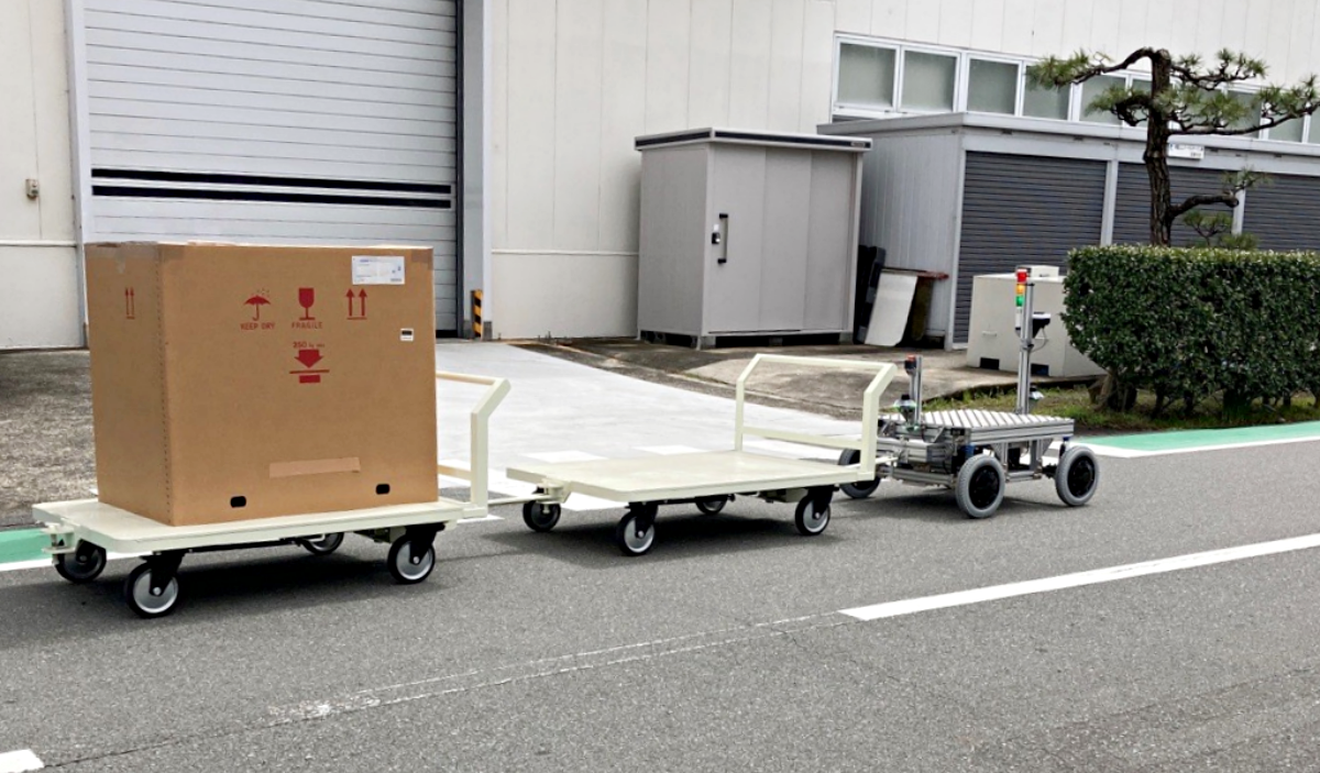 SMHDはその解決策として自社の自律走行ロボットを活用し、工場間の物流自動化を実現するための開発を行います。具体的には、ロボットと牽引台車の連結を行い積載量を上げた状態で、自己位置推定と環境地図作成による自律走行で生産性の向上や省人化を行います。工場間の物流自動化を実現するためには、地図データ上に経由点を設定してコースを作成する必要があり、使用環境に合わせた調整を行っています。両社はこの開発を行うために2022年3月に、工場敷地を開発フィールドとして提供する趣旨の共同研究契約を締結しました。