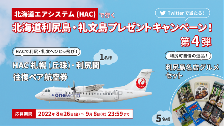 - HAC 札幌(丘珠)・利尻間の往復ペア航空券 ※各回 1 名